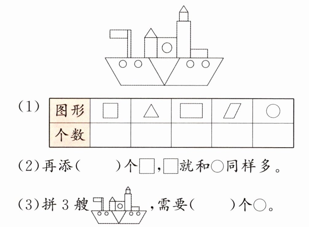(3) 1艘船需要5個?,3艘需要5×3=15個?。