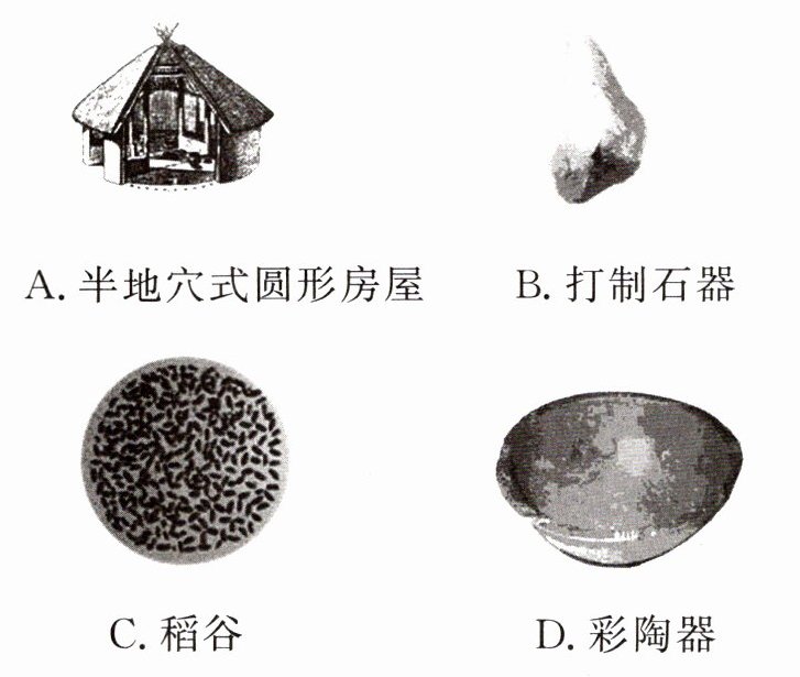 北京人生活在舊石器時代,使用打制石器。選項A半地穴式圓形房屋是半坡人居住的特征;選項C稻谷是河姆渡人種植的農作物;選項D彩陶器也是半坡人制作的陶器。而選項B打制石器符合北京人生活特征。