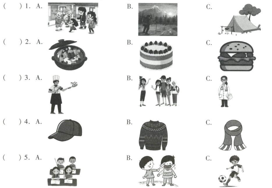 第一節 聽句子,選擇圖片。(共 5 小題;每小題 1 分,滿分 5 分)