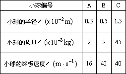(1)根據(jù)表中的數(shù)據(jù),求出B球與C球在達(dá)到終極速度時所受的空氣阻力之比f1:f2;